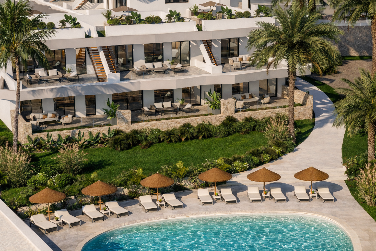 La vivienda cuenta con 3 dormitorios y 2 baños, distribuidos de forma funcional para maximizar la comodidad. El corazón de la casa lo forma un amplio salón comedor con cocina integrada, un espacio abierto y moderno que conecta directamente con las zonas exteriores, creando una transición natural entre interior y terraza ideal para disfrutar del clima mediterráneo.
